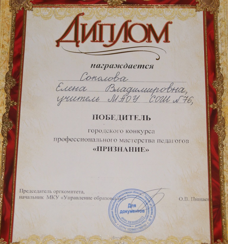 Поздравляем Соколову Елену Владимировну - победителя городского конкурса профессионального мастерства "Признание" в номинации "Лучший учитель начальных классов"!